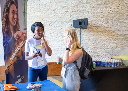 GHC was full of fun social events for attendees, too, like an energetic scavenger hunt that led teams to take selfies with pilots at the airport, meeting Audible listeners on a 400-foot observation wheel at Orlando’s Icon Park, and much more. Not only did our leaders and recruiters connect with attendees, Audible employees from our Newark and Cambridge offices had the opportunity to better get to know each other throughout the conference.